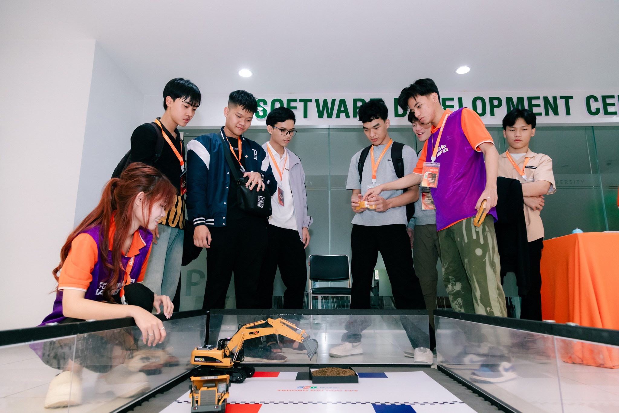 Thử sức với loạt mini game công nghệ: Đấu trường xe xúc, Pickleball Reaction Test, Quiz IQ,Mini Golf, Sàn đấu ca từ… Mỗi trò chơi đều giúp 2K8 nhìn thấy một phần đời sống giải trí “chuẩn sinh viên” tại ngôi trường công nghệ;