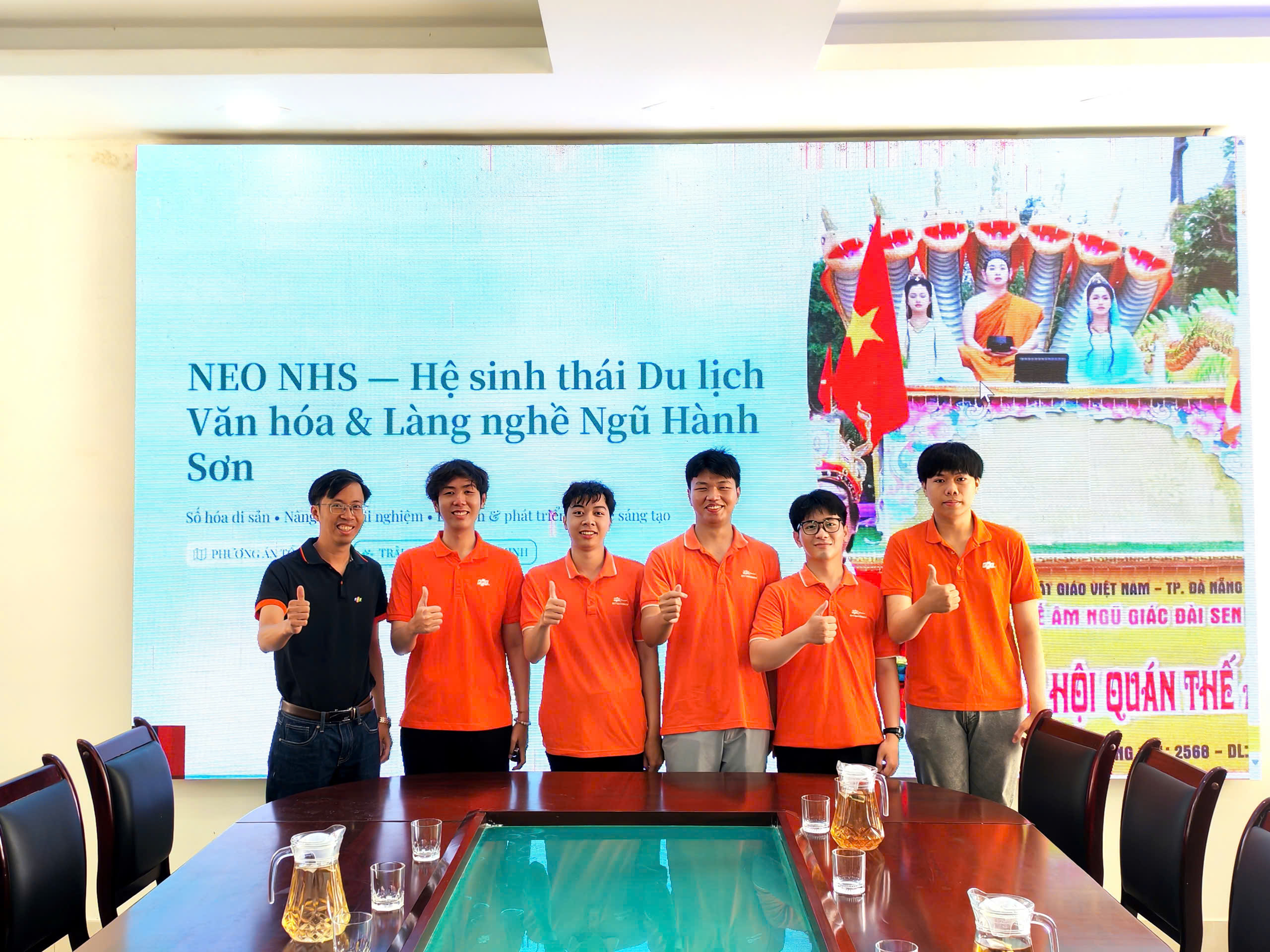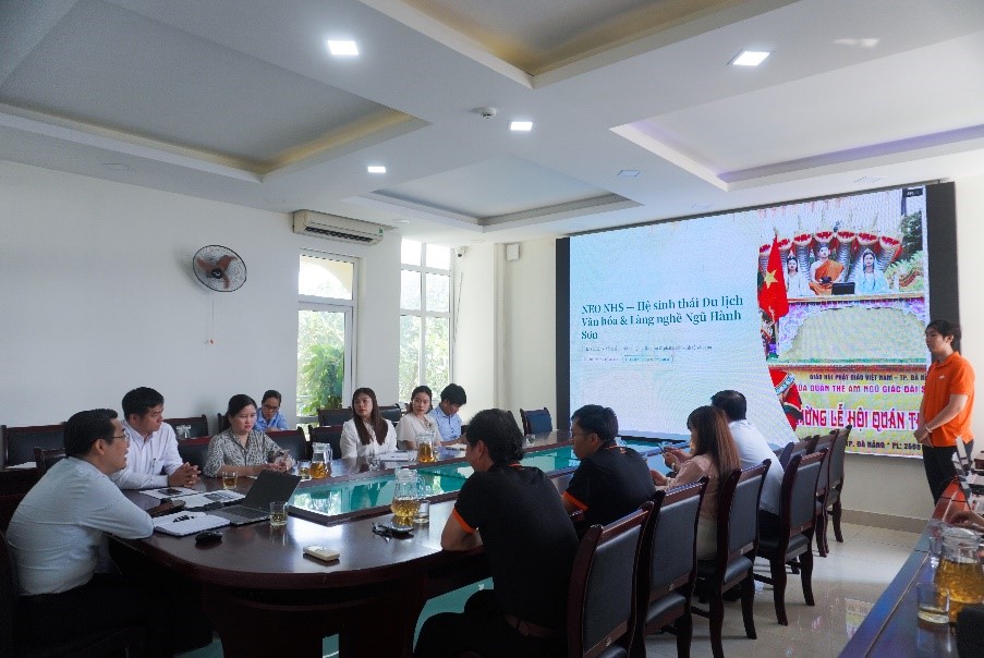 Tại đây, đại diện nhóm sinh viên thực hiện dự án của Phân hiệu Trường Đại học FPT tại Đà Nẵng đã giới thiệu bản demo của “Ứng dụng NeoNHS” nêu rõ mục tiêu, các tiện ích, tính năng. Theo đó, “Ứng dụng NeoNHS” được xây dựng nhằm số hóa thông tin du lịch, văn hóa và sự kiện địa phương; nâng cao trải nghiệm cho người dân và du khách; đồng thời hỗ trợ phường trong công tác quản lý, truyền thông và chuyển đổi số. Các tính năng chính của ứng dụng là quản lý sự kiện và hoạt động (Cập nhật các lễ hội, hoạt động văn hóa, giao lưu cộng đồng; hiển thị lịch sự kiện và thông báo từ phường); Workshop và chương trình phối hợp (Tổng hợp các workshop, chương trình hợp tác; hỗ trợ đăng ký tham gia trực tiếp trên ứng dụng; Thông báo và phổ biến chính sách (Cập nhật các buổi họp, chương trình triển khai; truyền tải thông tin nhanh chóng đến người dân); Bán vé và dịch vụ du lịch (Hỗ trợ đặt vé tham quan các điểm du lịch; nâng cao trải nghiệm và giảm tải tại điểm đến); Bản đồ và định vị thông minh (Xác định vị trí người dùng trong khu vực; hỗ trợ tìm kiếm địa điểm xung quanh); Check-in và chia sẻ địa điểm (Cung cấp các điểm check-in nổi bật; cho phép người dùng chia sẻ địa điểm với cộng đồng); Du lịch văn hóa và làng nghề (Giới thiệu các di tích lịch sử, điểm du lịch văn hóa và làng nghề truyền thống); Chỉ đường thông minh (Điều hướng đến các điểm tham quan một cách thuận tiện); Trải nghiệm ảnh 360 (Cho phép tham quan địa điểm bằng công nghệ thực tế ảo; tích hợp thuyết minh tự động khi tương tác); Hệ thống quản trị (Cho phép thêm, chỉnh sửa, xóa nội dung; tùy chỉnh linh hoạt, dễ sử dụng).